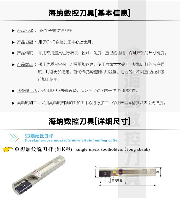 SR加长梳齿内冷螺纹铣刀杆