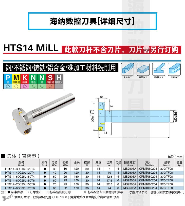 HTS14加工中心T型槽侧铣开槽三面刃刀杆