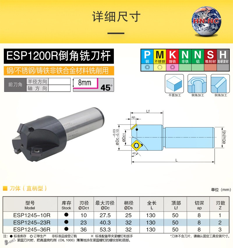 SL-180°反向倒拉锪孔沉头螺钉孔加工中心进口数控铣刀杆