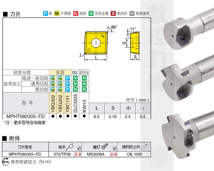 TMR-R3.0三面刃圆鼻T型槽铣刀杆