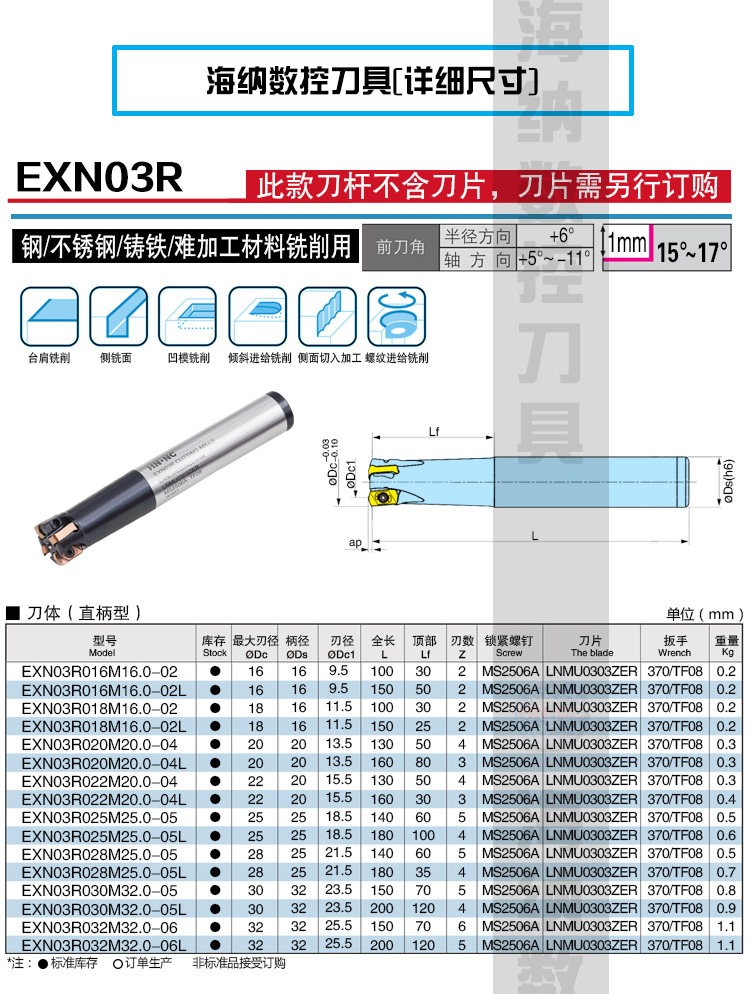 EXN03R高效率快进给铣刀杆