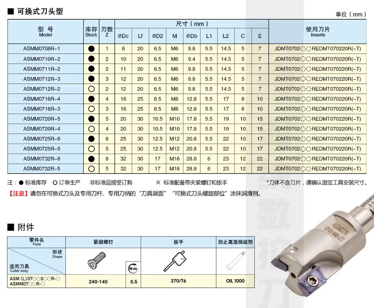 HSK63A-VC22-R3圆鼻高速快进给锁牙铣刀