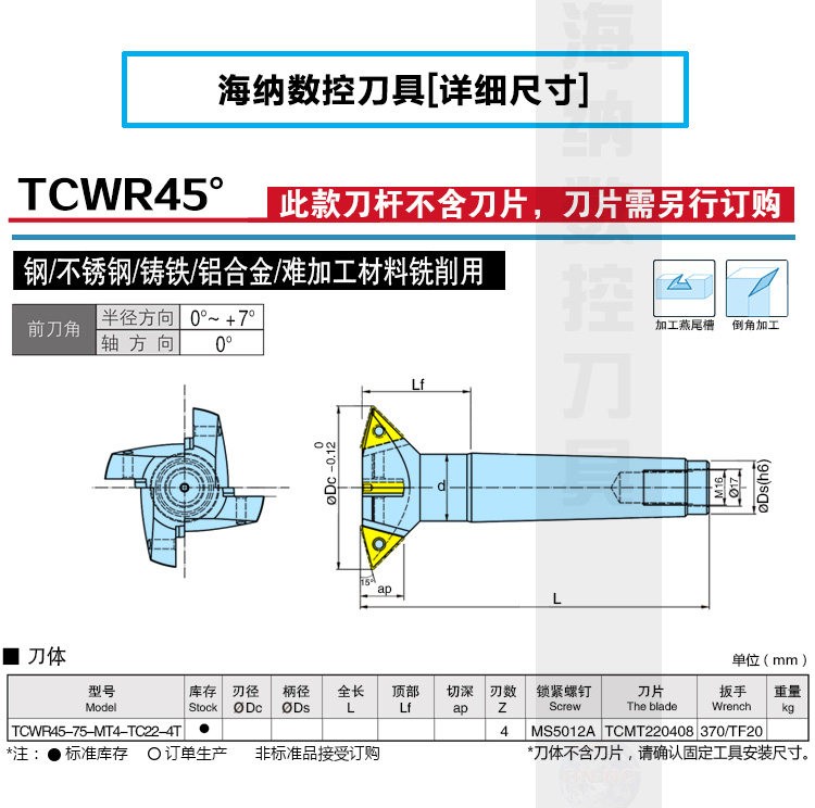 TCWR45度燕尾槽铣刀杆