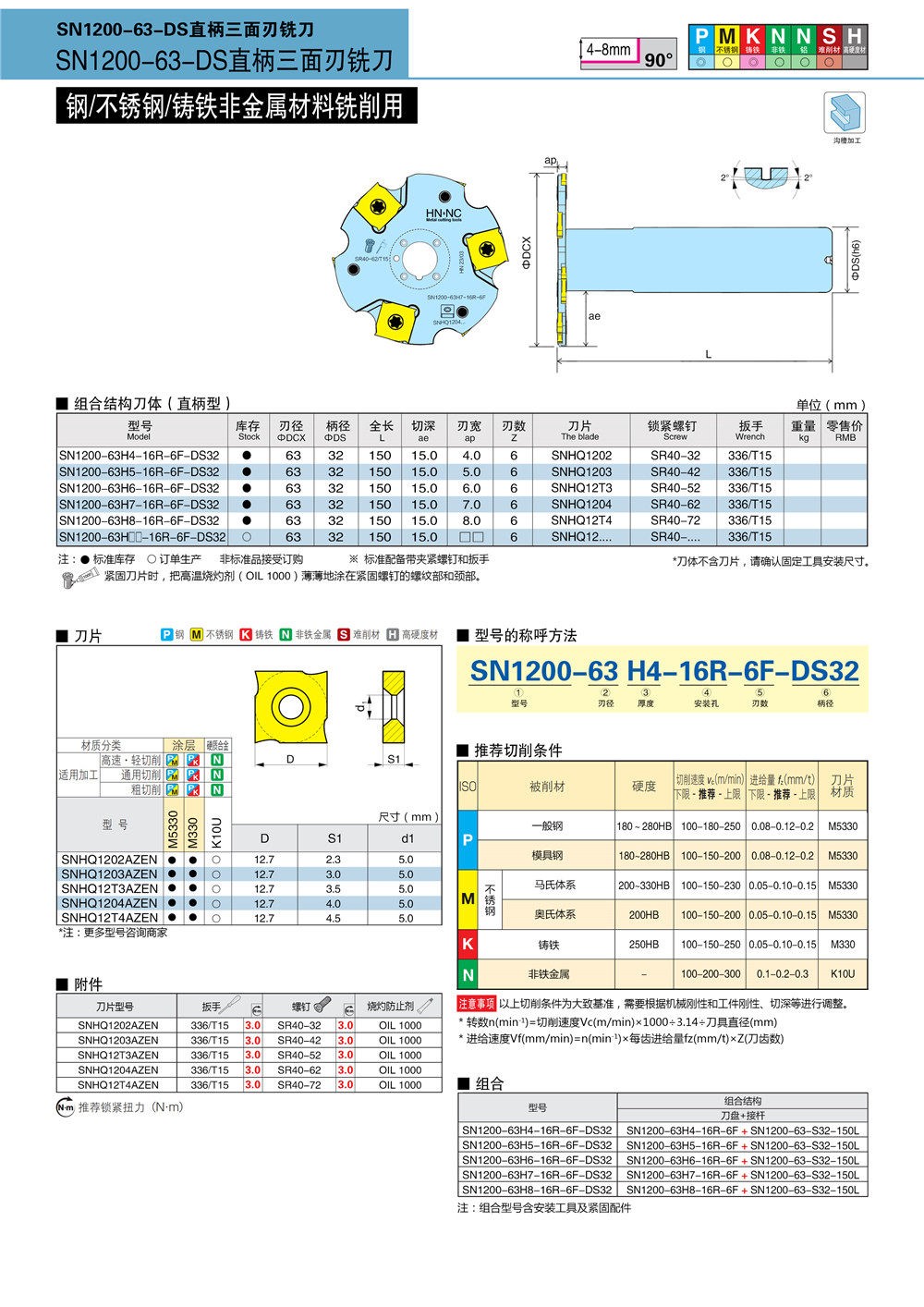 SN1200-63三面刃切槽铣刀盘