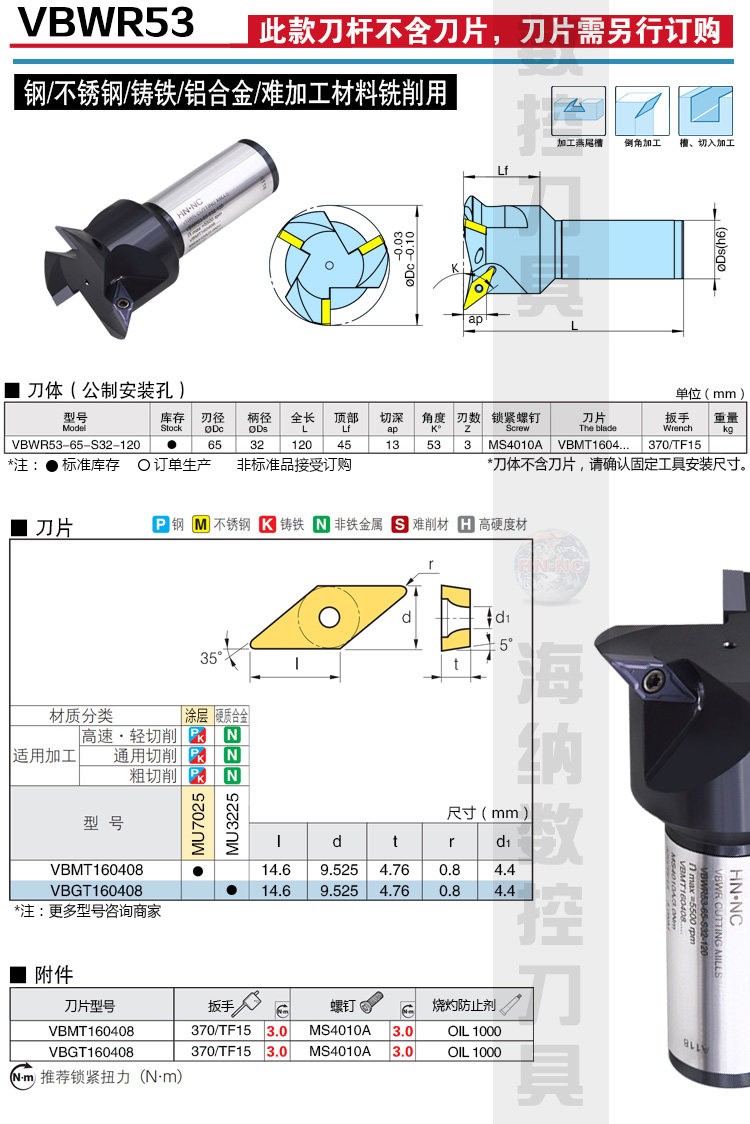VBWR53度燕尾槽铣刀杆