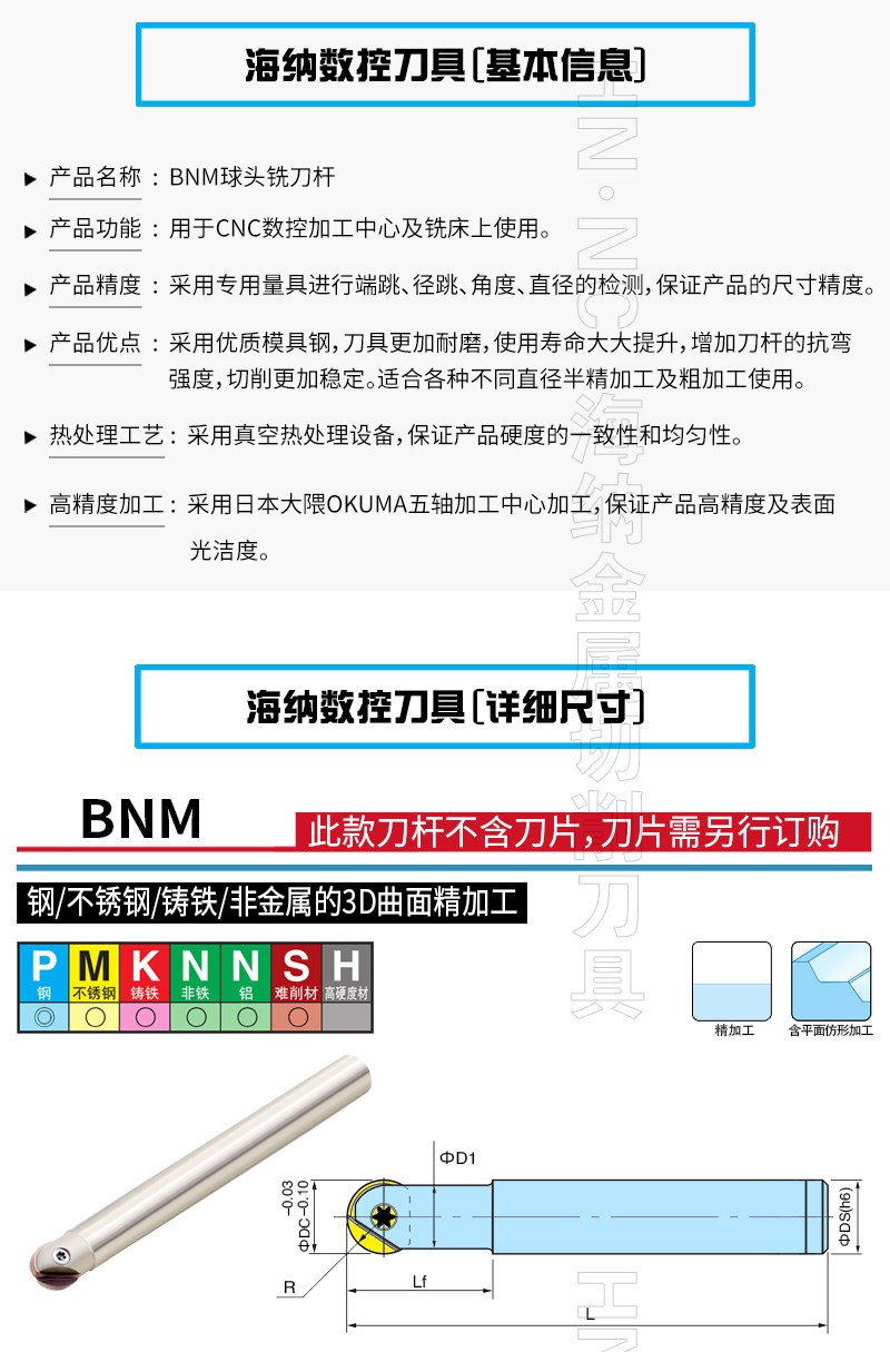 BNM加工中心镜面球头精铣刀杆