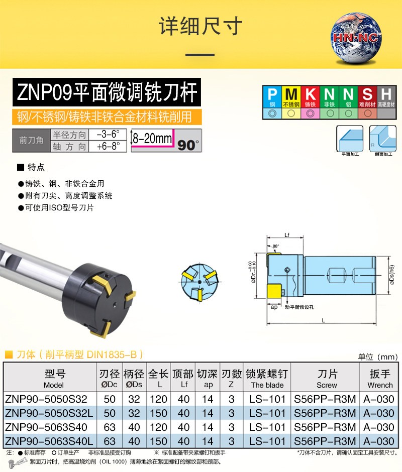 ZNP90直柄微调精加工平面立铣刀杆