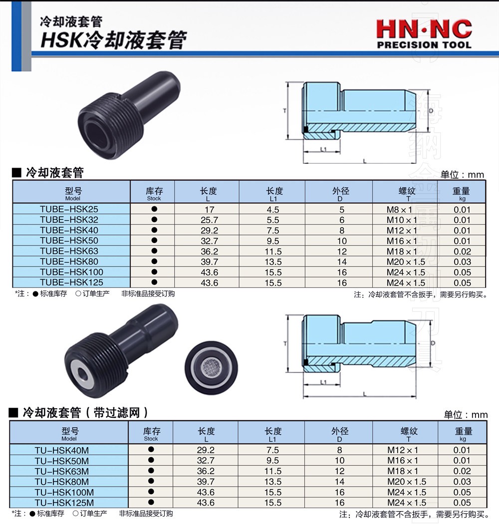 TUBE-HSK数控刀柄冷却液套管