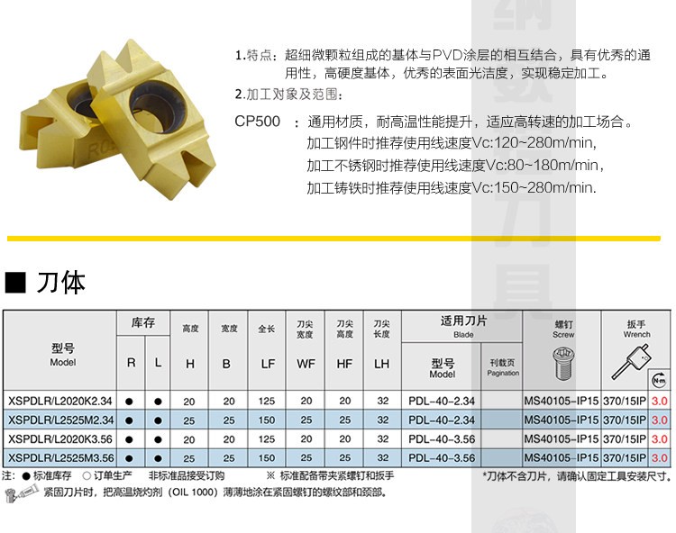 GER150-010C TP30M 硬质合金涂层切槽刀片