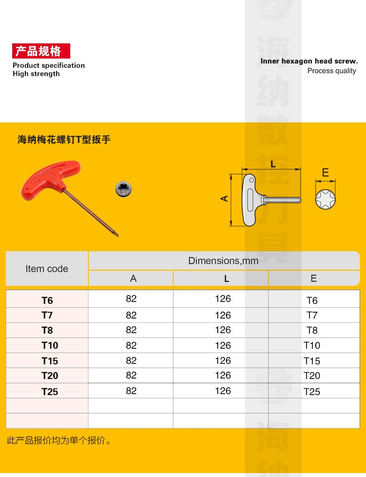 T型梅花螺钉扳手数控刀具配件星型强力螺丝刀