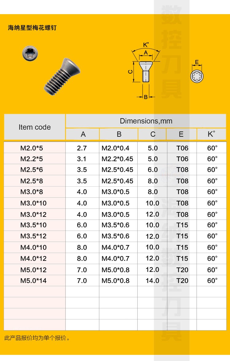 BNM球头精铣刀杆专用梅花螺钉FSW数控刀具配件