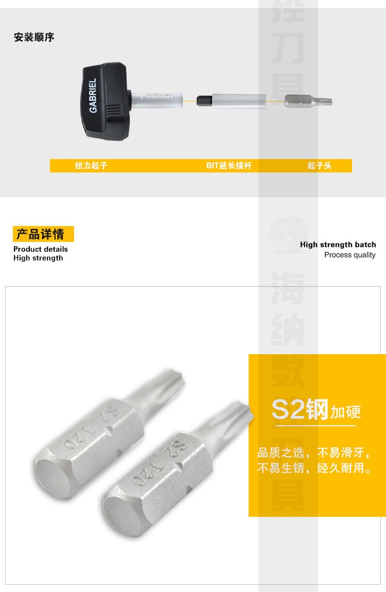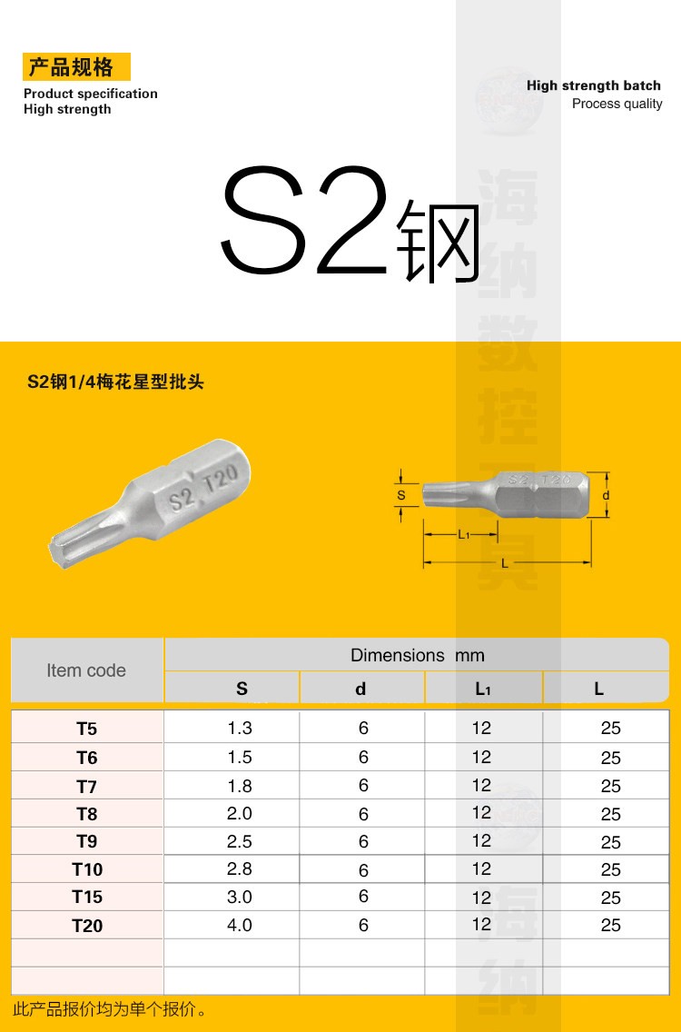 S2钢1/4旋具批头高强度内六方扭矩批头