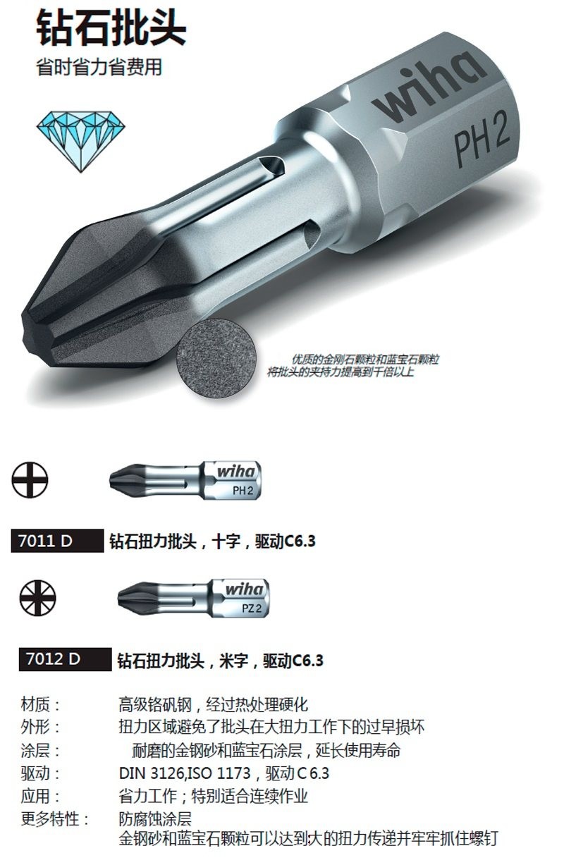 德国进口wiha威汉1/4十字米字电动冲击起子头PZ3批嘴风批起子