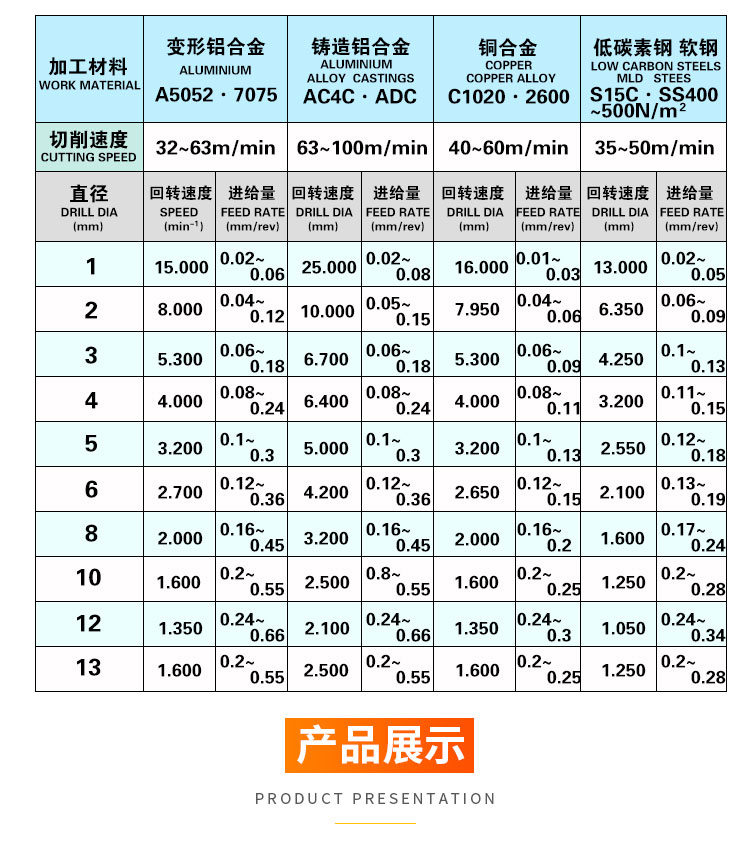 钻削产品资料