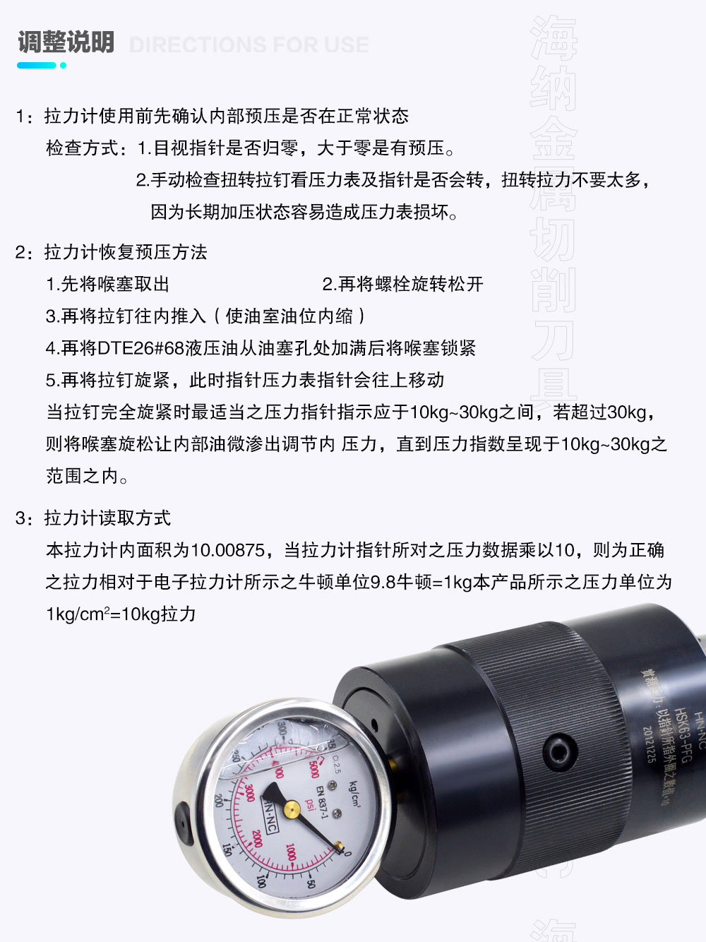 海纳BT30/40/50/60油压机械主轴拉力计