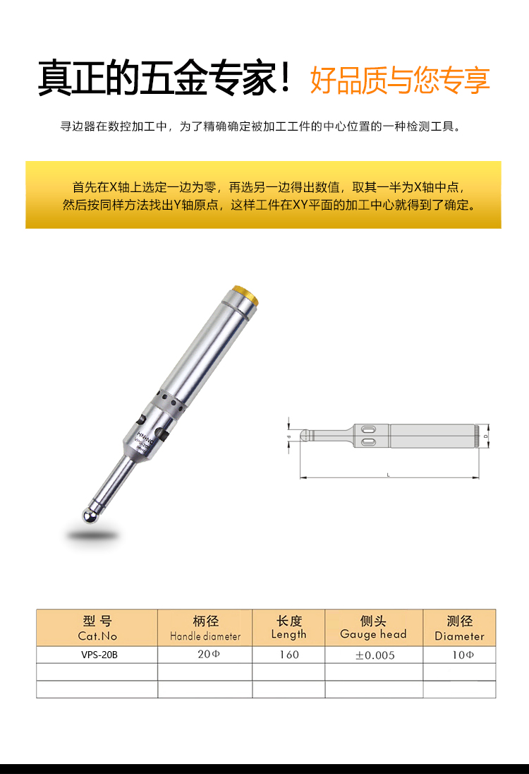 纳斯卡VPS-302S不锈钢无磁寻边器分中棒