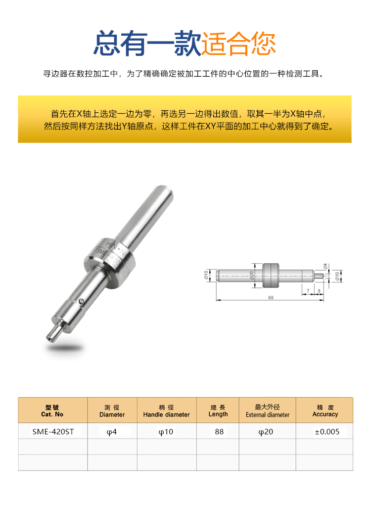 纳斯卡SME-420ST不锈钢无磁寻边器分中棒