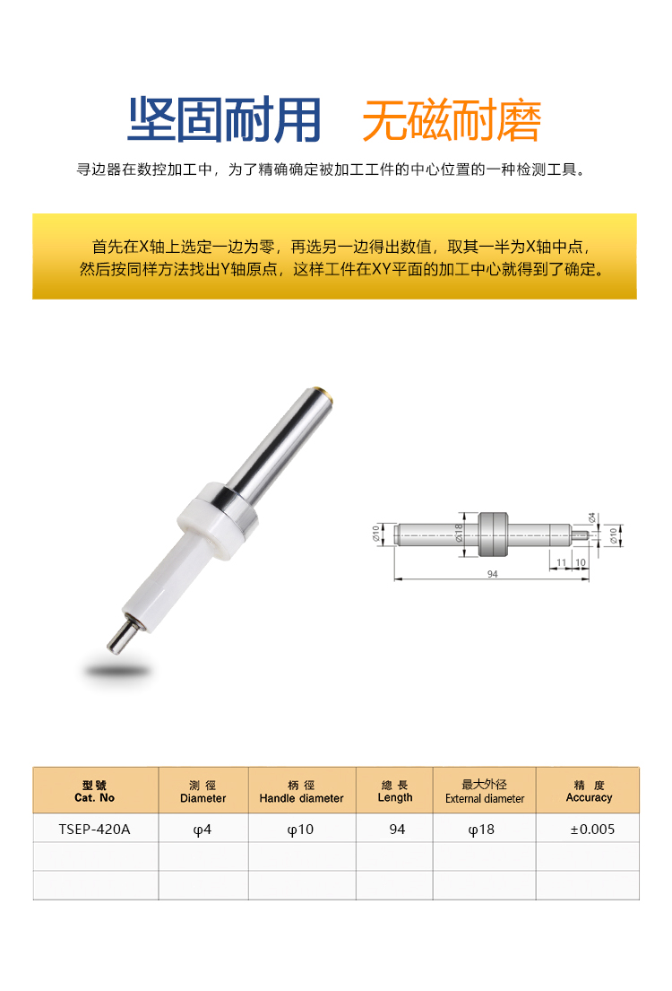 纳斯卡TSEP-420A无磁陶瓷寻边器分中棒
