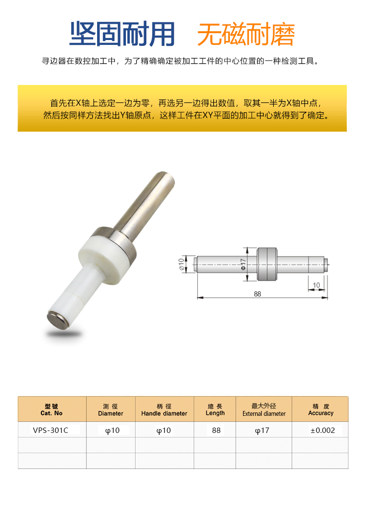 NASKA陶瓷寻边器VPS-301C无磁分中棒