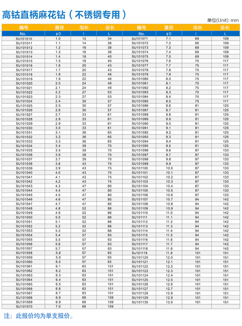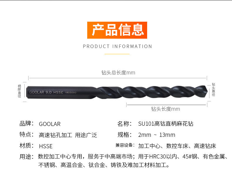 SU101高钴钻头HSSE含钴不锈钢钛合金调质钢专用直柄麻花钻头
